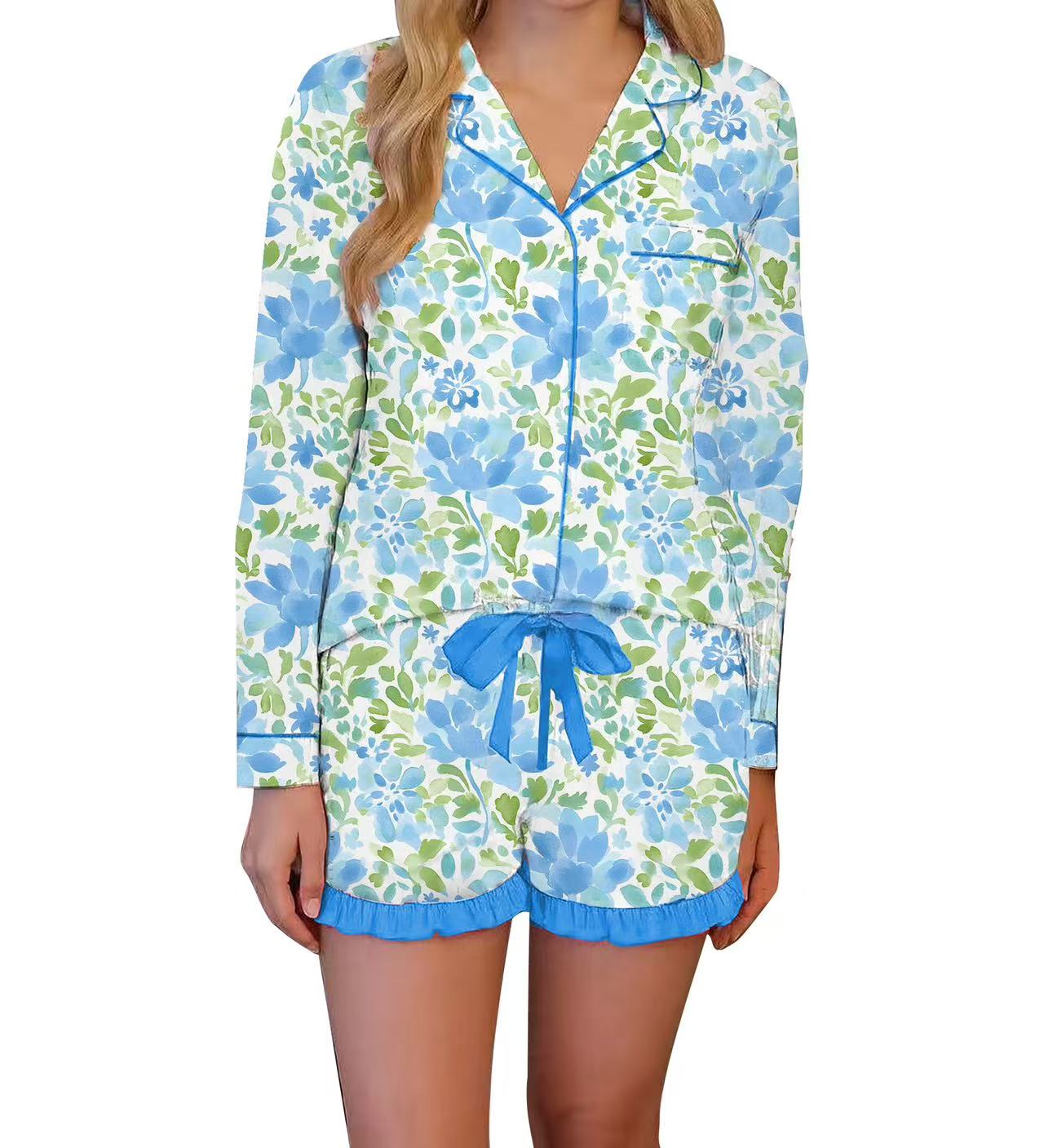 Blue Blossom Pajama Set – Fresh Watercolor Spring Loungewear